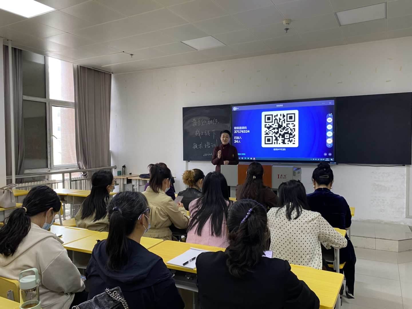 培训中,吕洋向大家详细介绍了线上线下混合式教学操作方法,例如:如何启用智慧黑板、如何进行问题讨论、如何在超星平台中使用腾讯会议等内容,并通过随机抽取教师上台演示的方式进行了现场指导,同时,还针对教师在近半个月的实际操作中遇到的问题进行了详细解答。