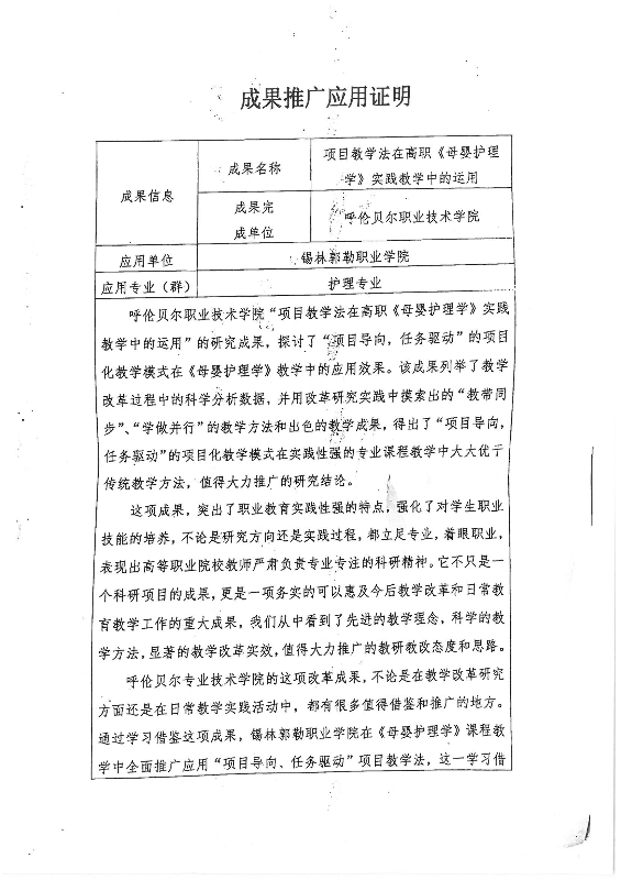2018年呼伦贝尔职业技术学院教师国庆获奖教学成果的推广
