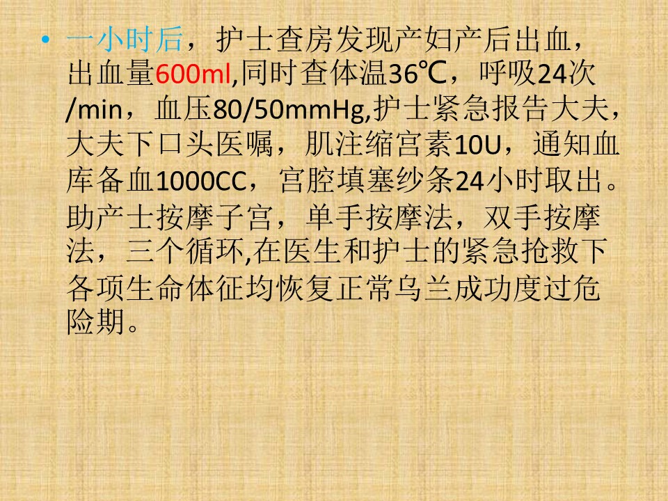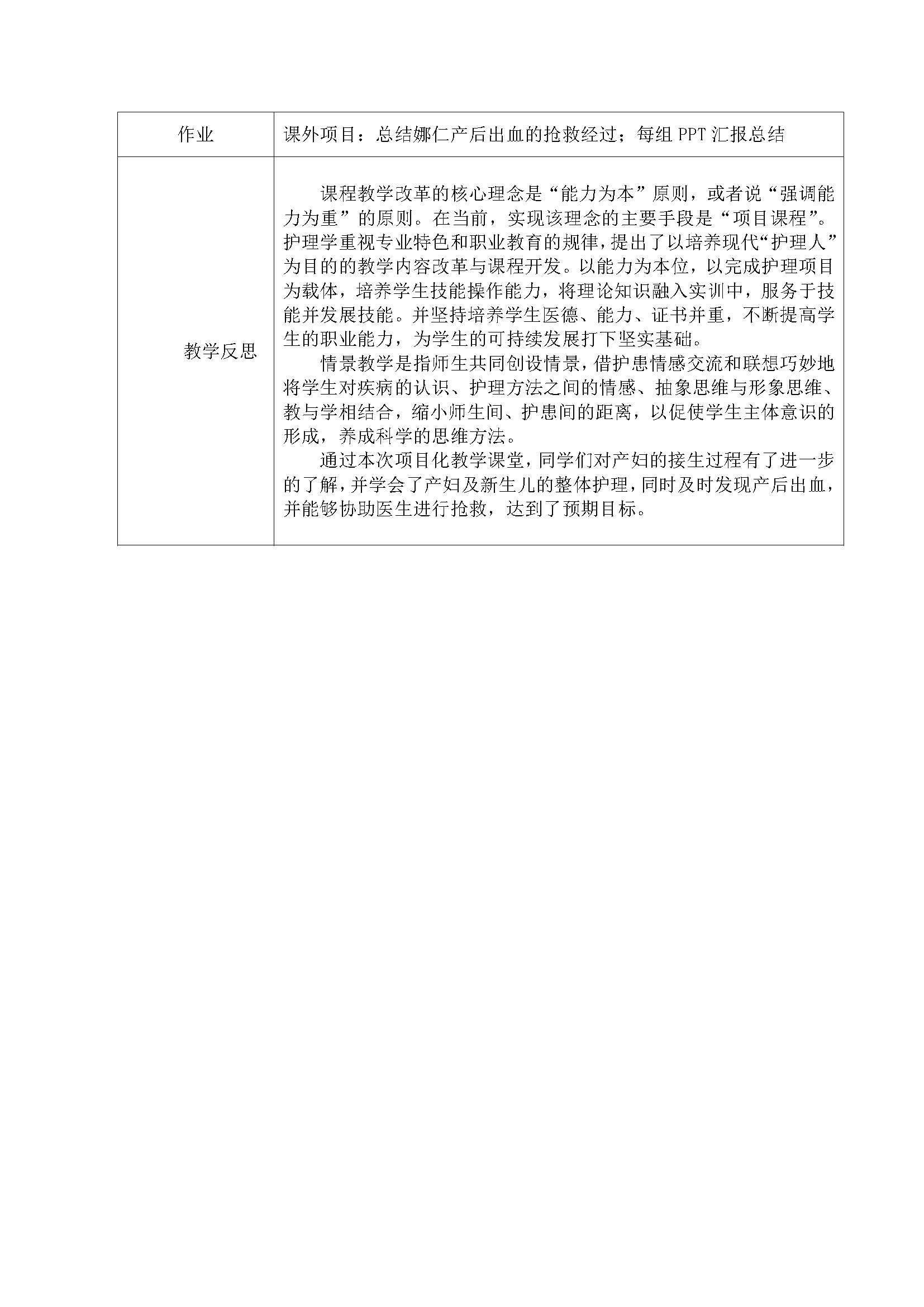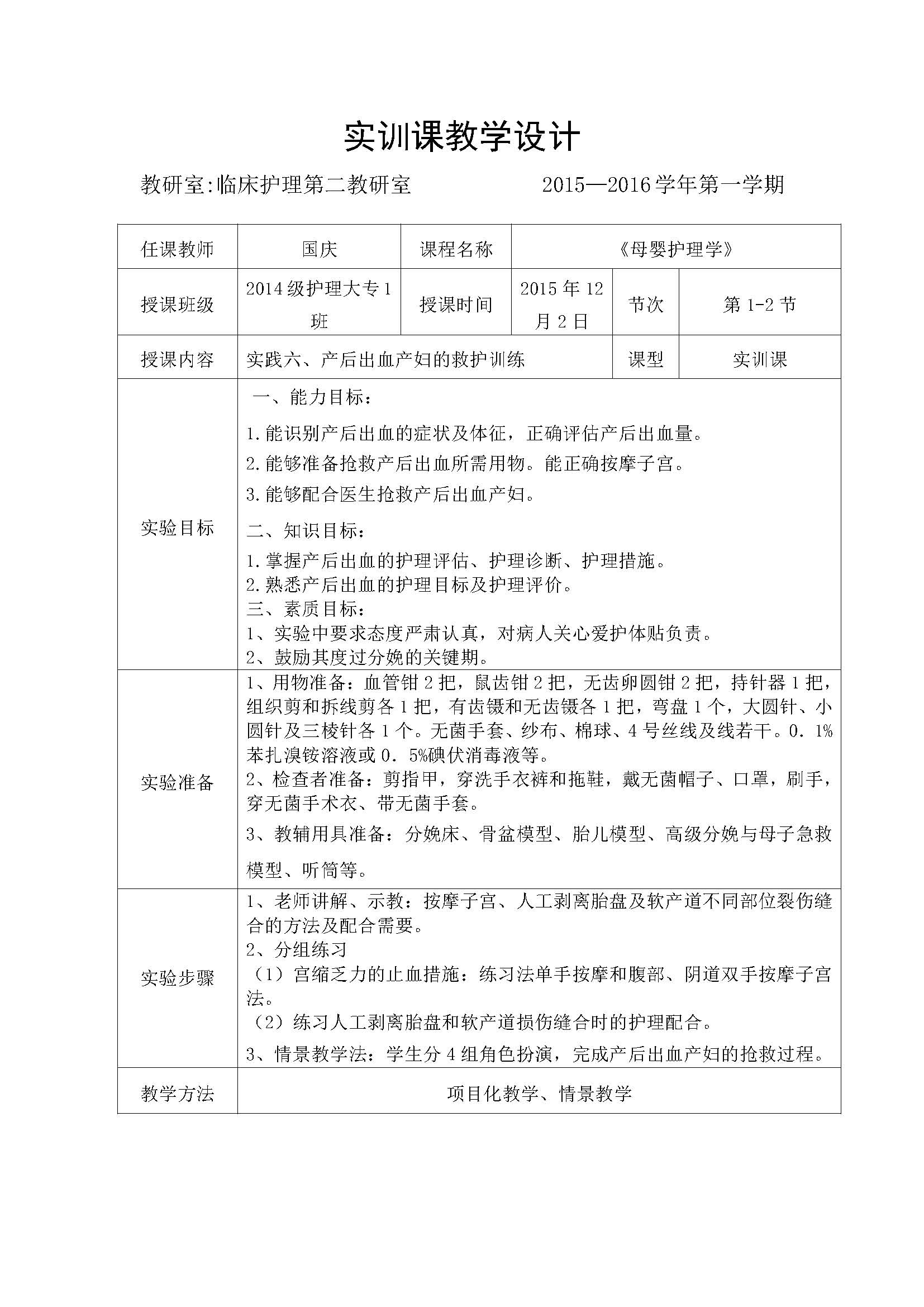 二、《母婴护理学》项目化教学设计--实践六、产后出血产妇的救护训练