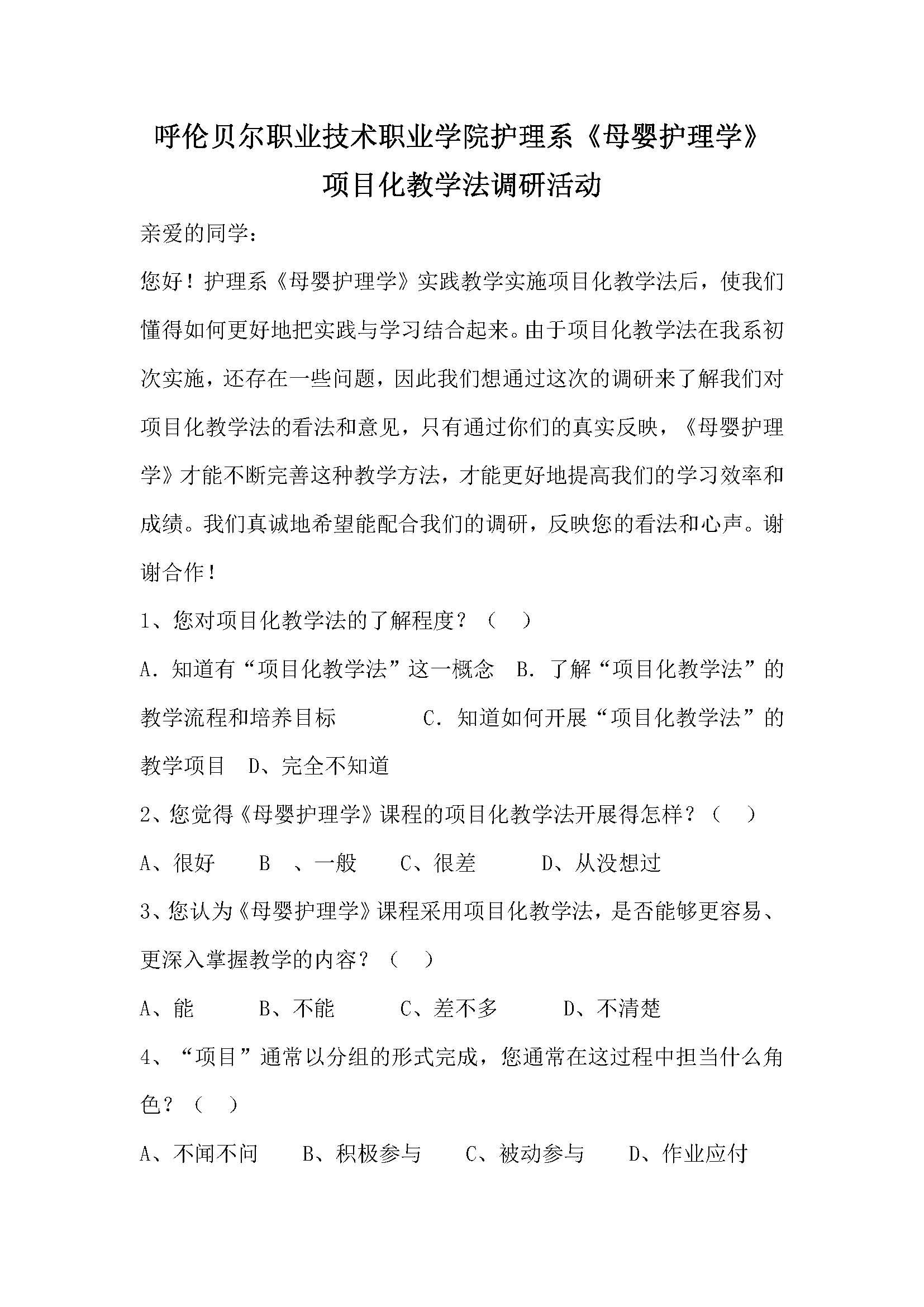 四、调查问卷