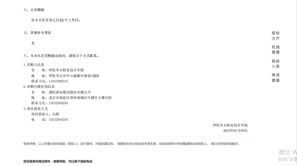 呼伦贝尔职业技术学院设备采购项目询价结果公示