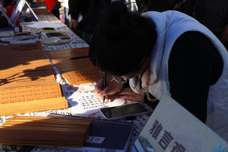 “琢艺创新工作室”带来非遗传统插花、皮艺、文创、刺绣;“索伦嘎工作室”设置窗花剪纸、非遗漆扇、陶泥制作,让大家在亲手触摸中感受传统手工艺的温度;“文心雅言工作室”打造翰墨书写台、活字文心坊、甲骨探秘角、雅言观澜处,以国家通用语言文字为纽带,全方位展现语言文字的文化魅力;“赛音吉雅马头琴大师工作室”现场展示马头琴制作与演奏互动,既让师生亲手触摸琴身选材、蒙皮调音的非遗匠心,又在琴声与技艺的交融中,传递出马头琴“师徒相授、心口相传”的传承内核,让草原非遗的技艺与精神在沉浸式体验中代代延续;“非遗长调民歌名师道力金工作室”通过展示从艺经历、代表作品、教学成果,搭配现场互动教学与个人唱片发放,让师生深度走近非遗传承的日常。